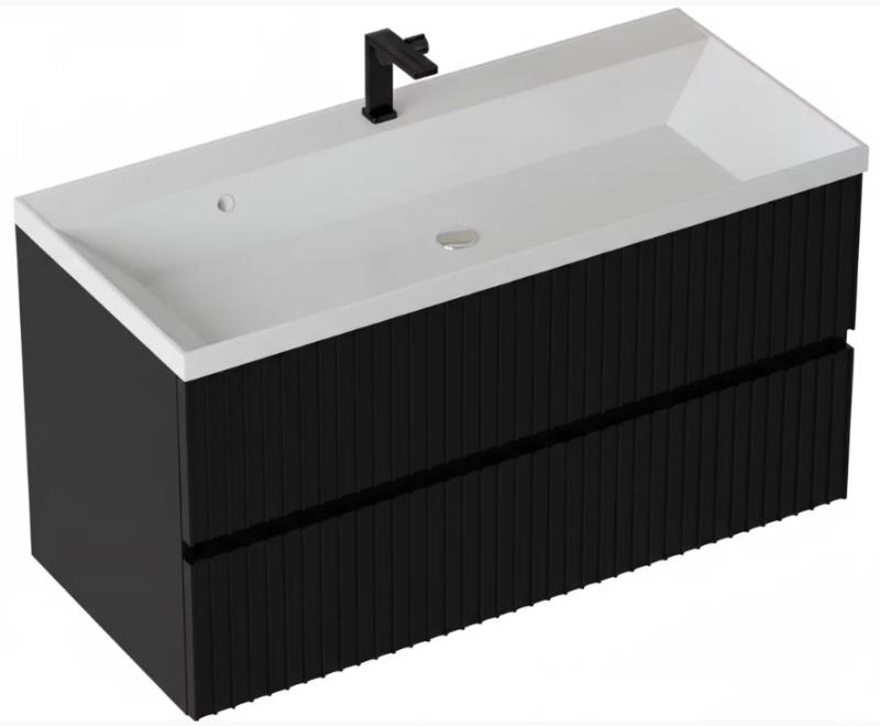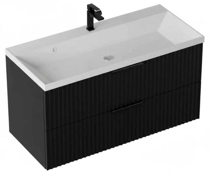 Тумба для умывальника Vela Волна 100П, Classica, 2в.я., черный мат./черный хекси