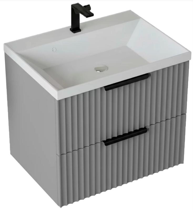 Тумба для умывальника Vela Волна 60П, Classica, 2в.я., серый мат./черный хекси