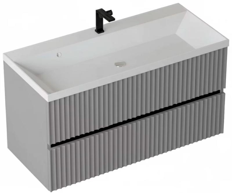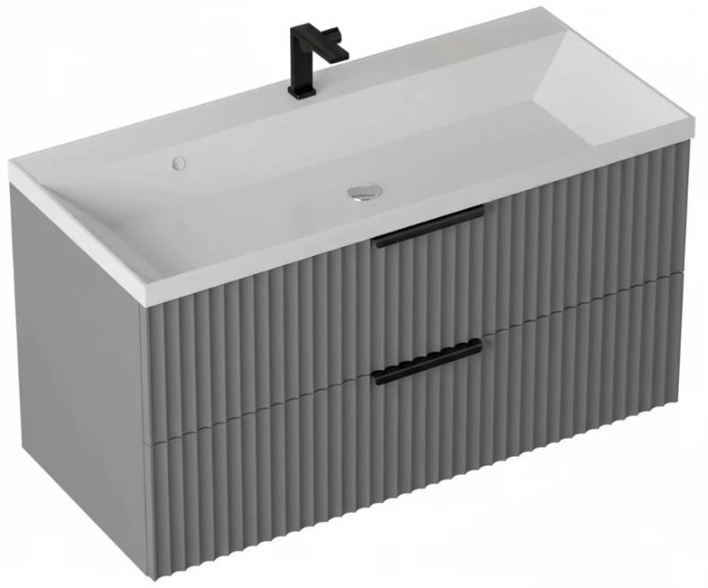 Тумба для умывальника Vela Волна 100П, Classica, 2в.я., серый мат./черный гола