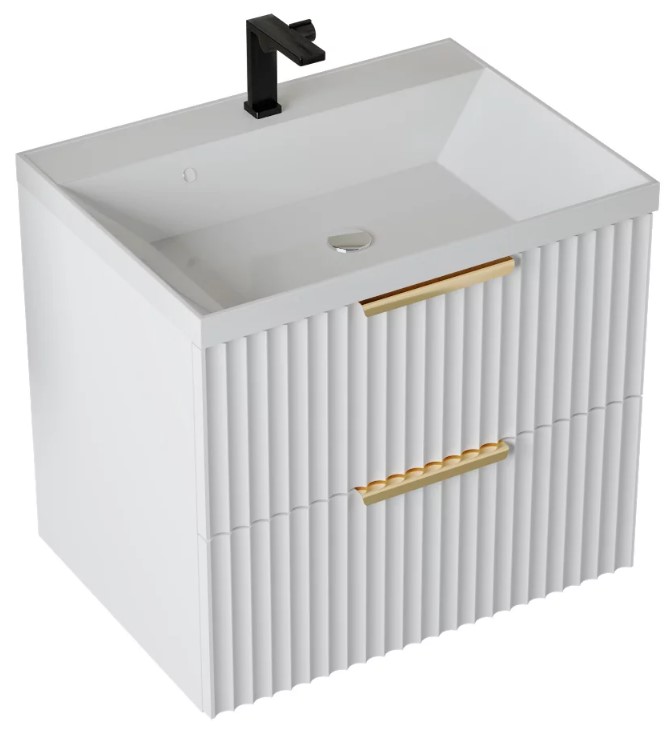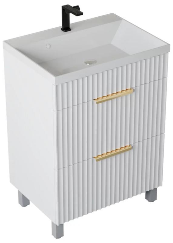 Тумба для умывальника Vela Волна 60П, Classica, 2в.я., белый мат./белый гола