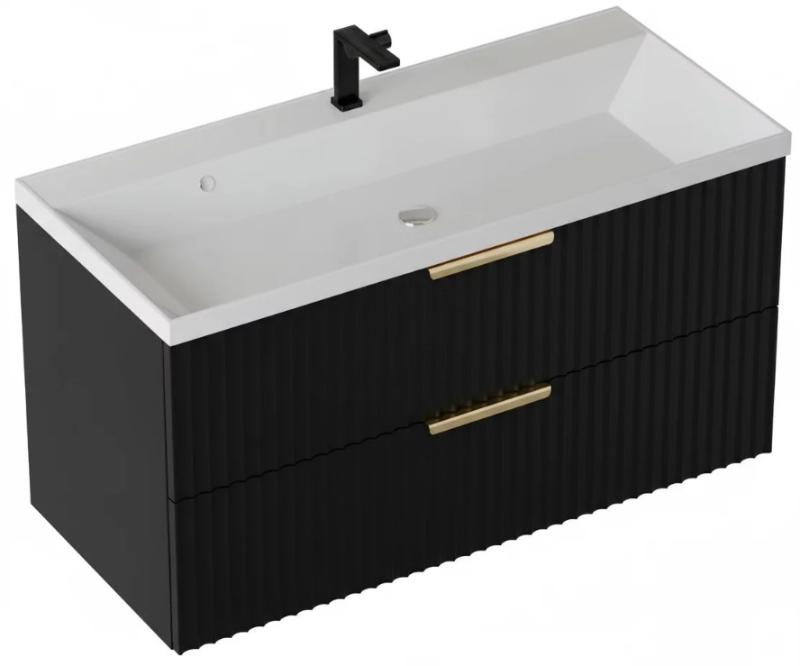 Тумба для умывальника Vela Волна 100П, Classica, 2в.я., черный мат./черный гола