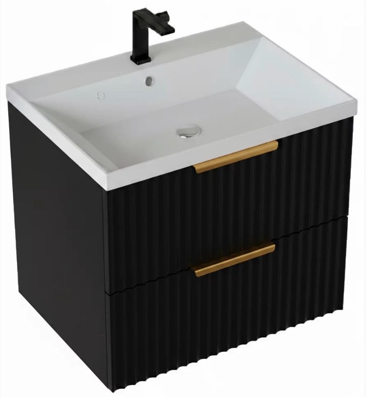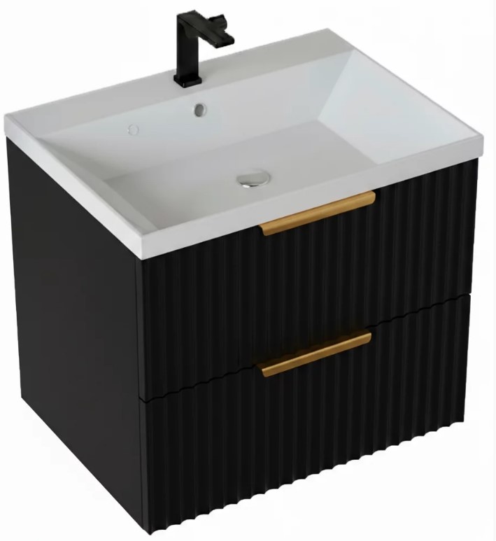 Тумба для умывальника Vela Волна 60П, Classica, 2в.я., черный мат./черный гола