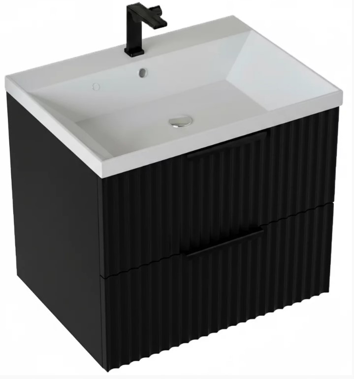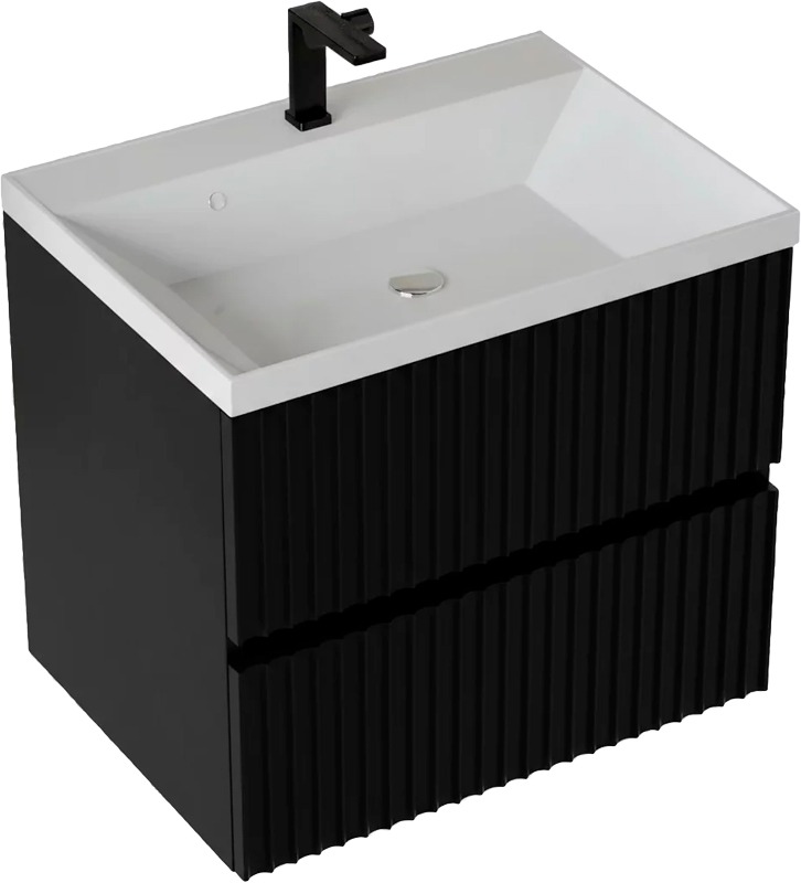 Тумба для умывальника Vela Волна 60П, Classica, 2в.я., черный мат./черный хекси