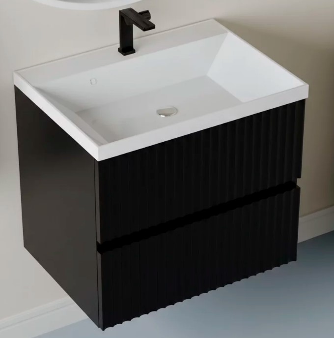 Тумба для умывальника Vela Волна 60П, Classica, 2в.я., черный мат./черный хекси