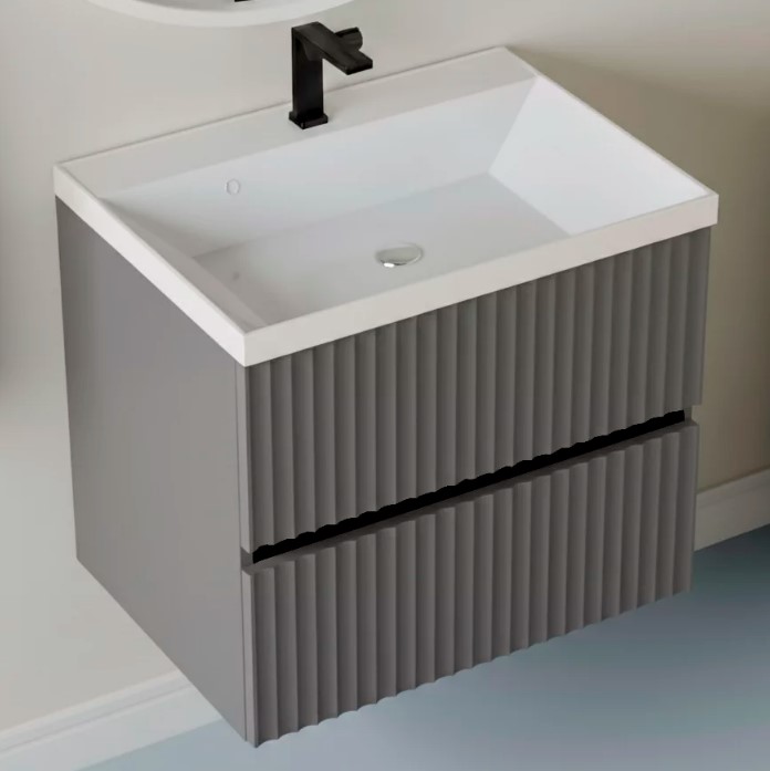 Тумба для умывальника Vela Волна 60П, Classica, 2в.я., серый мат./черный хекси