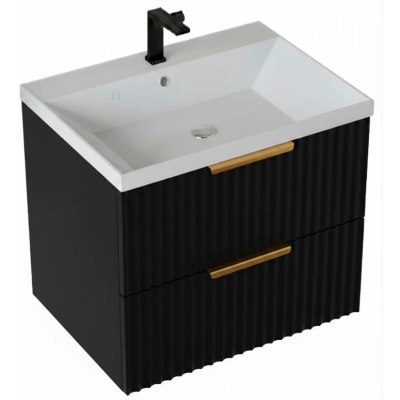 Тумба для умывальника Vela Волна 60П, Classica, 2в.я., черный мат./золото хекси