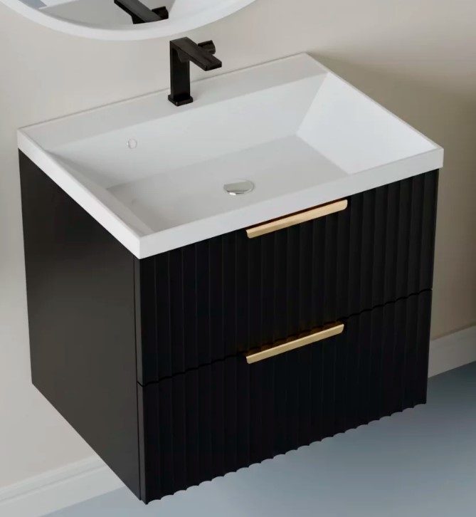 Тумба для умывальника Vela Волна 60П, Classica, 2в.я., черный мат./черный гола