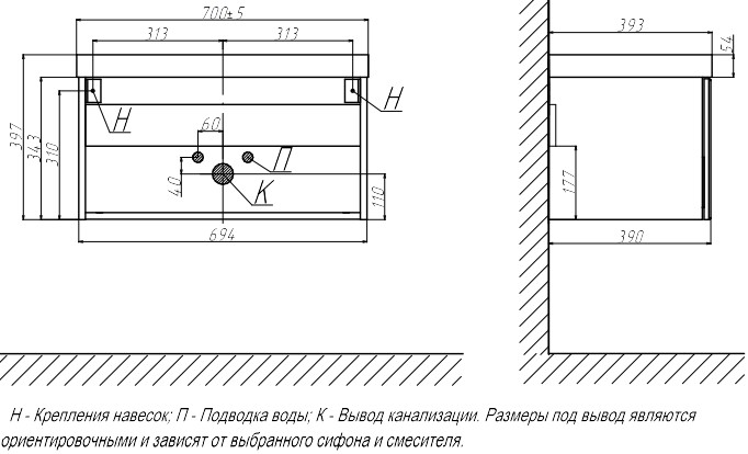 Дополнительно комплектуется: умывальник 9696-70 см, смеситель, сифон. |