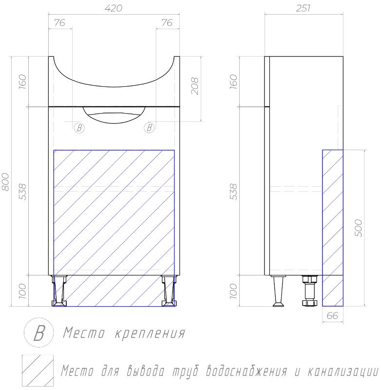 Тумба для умывальника Vigo Callao-450-1-0 Уют напольная, 1 дв.. Все характеристики |