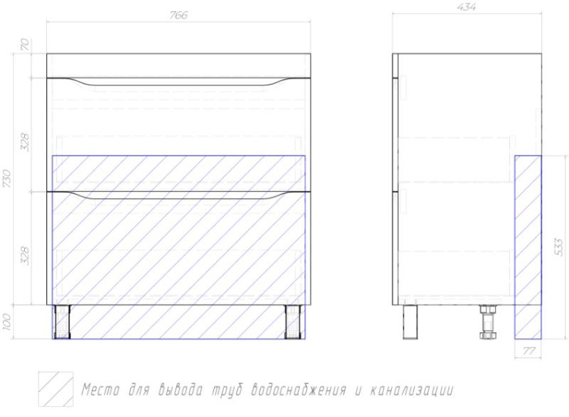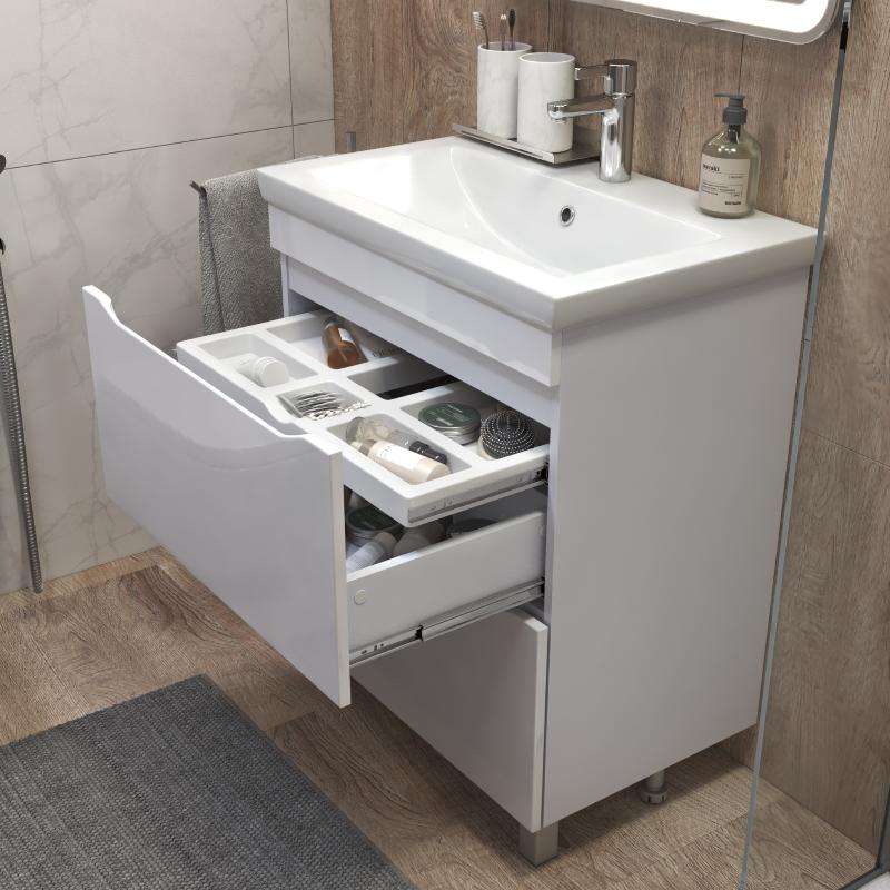 Тумба для умывальника Vigo Grani 800-0-2 80 Como напольная, 2 ящ., белый. Все характеристики |