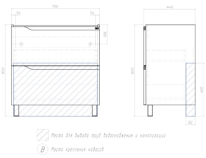 Тумба для умывальника Vigo Neo 800-0-2 80 Como напольная, 2 ящ., белый. Все характеристики |