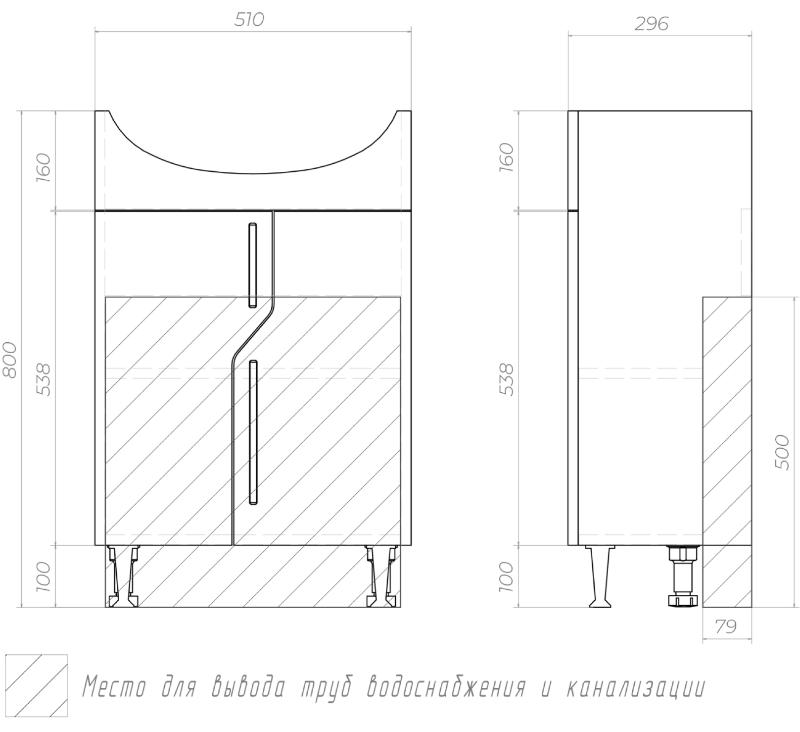Тумба для умывальника Vigo Turin 550-2-0 Уют напольная, 2 дв., белый. Все характеристики |