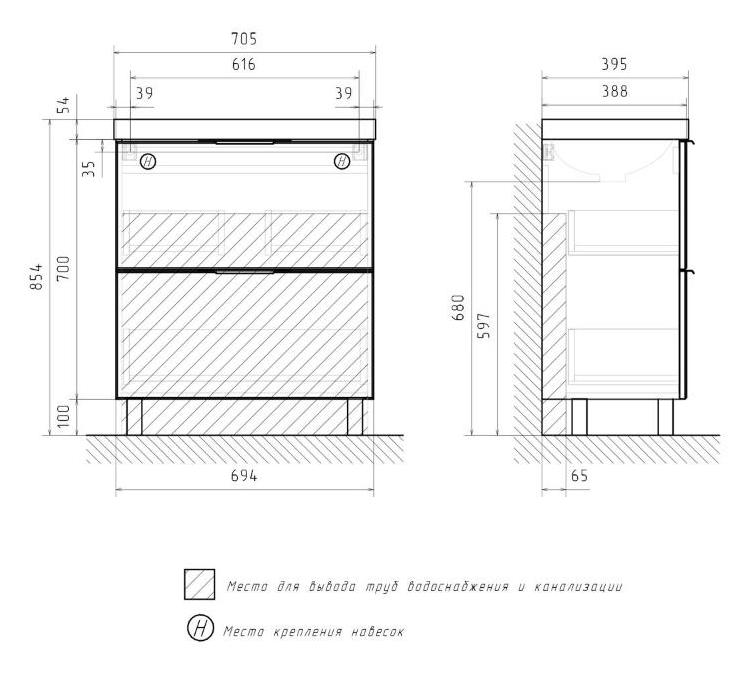 Тумба для умывальника Volna Geometry 70.2Y (9696) напольная, 2 ящ., графит, tnGEOMETRY70.2Y-07. Все характеристики |