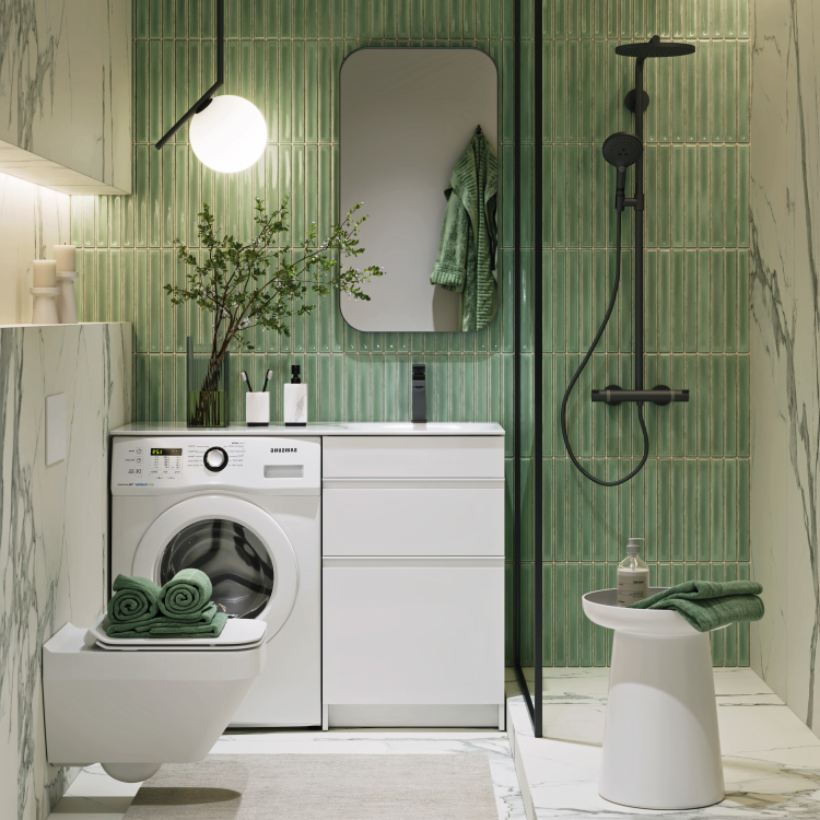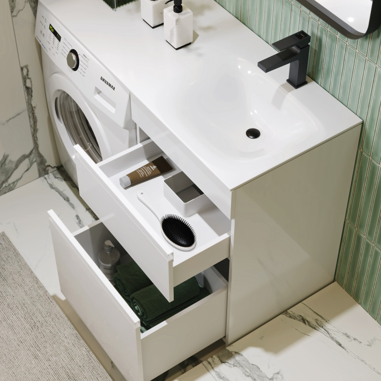 Тумба под стиральную машину Aqwella Duet 115 для умывальника, напольная, 2 ящ., правая, белый. Все характеристики |