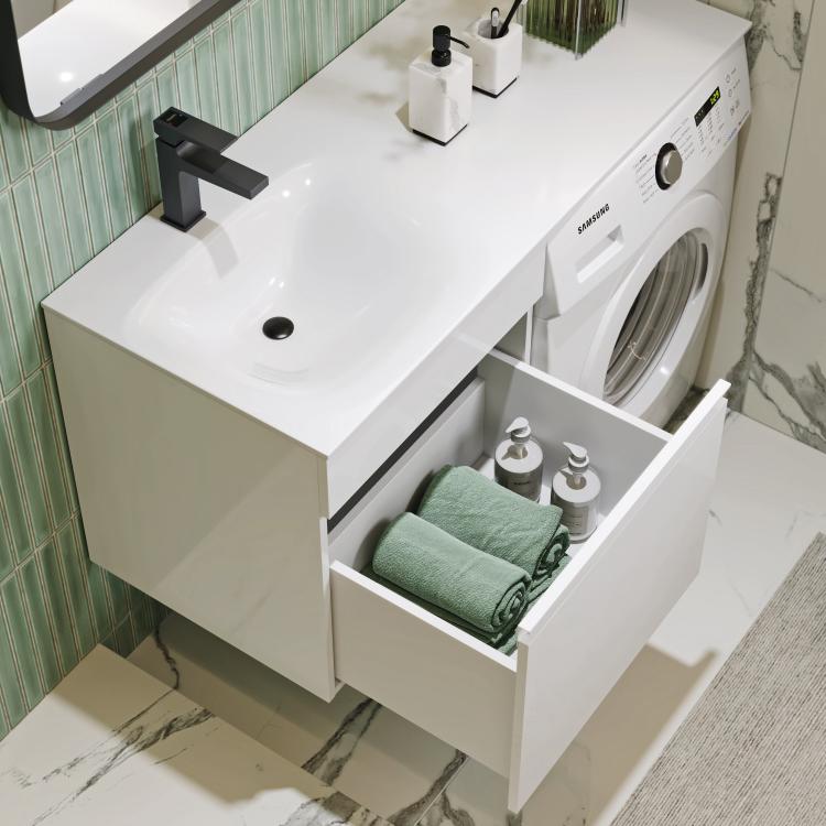 Тумба под стиральную машину Aqwella Duet 115 для умывальника, подвесная, 1 ящ., левая, белый. Все характеристики |