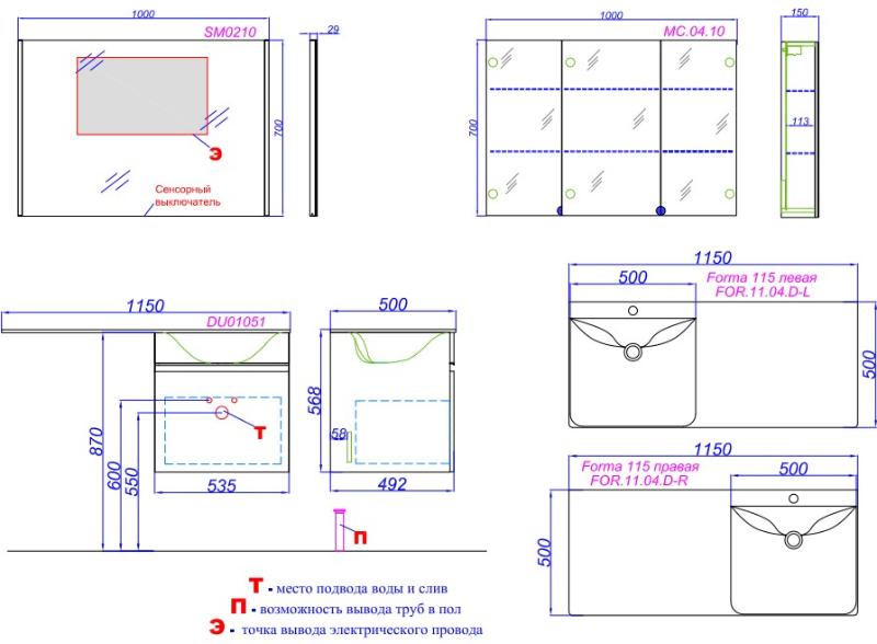 Дополнительно комплектуется: умывальник Forma 115 FOR.11.04.D-L левый, смеситель, сифон. |