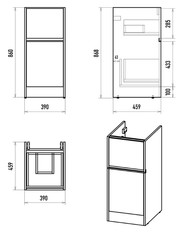 Тумба под стиральную машину Misty Ингрид 40 для умывальника 100, напольная. Все характеристики |