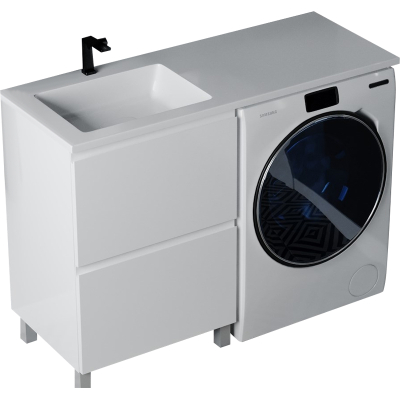 Тумба под стиральную машину Vela Мира 48Н 2в.я. для умывальника Kamilla 110, лев.\прав., белый глянец. Все характеристики |