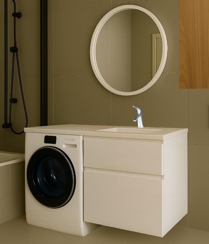 При заказе необходимо выбрать разворот раковины. Разворот определяется по расположению чаши умывальника: чаша-слева, а крыло-справа; чаша-справа, а крыло-слева. Под чашей будет располагаться шкаф, а под крылом - стиральная машина.Тумба для умывальника с крылом над стиральной машиной Vela Мира 66П TU1779 из влагостойкой МДФ Egger (Австрия). Свойства. Фасады и корпус из крашеной МДФ. Внутренние детали из ЛДСП. Легкий ход ящиков. Доводчик для плавного закрывания. Высота и глубина тумбы указаны без учета габаритов умывальника, ширина с раковиной - номинальная. Производство. Белорусская компания Vela занимается выпуском мебели для ванных комнат. Собственный конструкторский отдел. Современное оборудование. Качество. Продукция соответствует белорусским ГОСТам и стандартам Таможенного союза. Красивая отечественная мебель высокого качества. Изображение и цвет на мониторе могут отличаться от оригинала. Комплектность:
