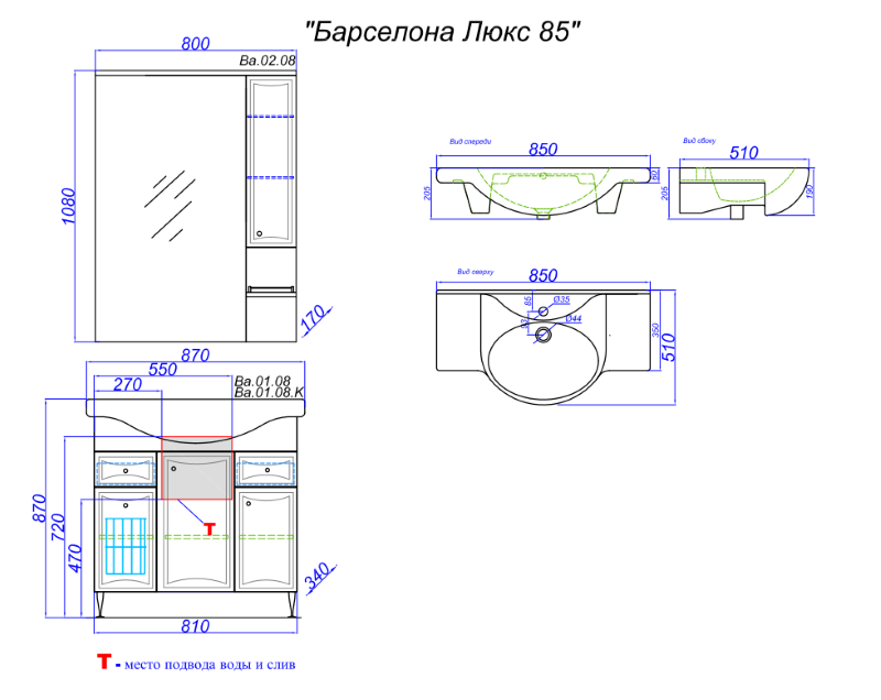 Тумба с умывальником Aqwella Барселона-Люкс 85. Все характеристики |