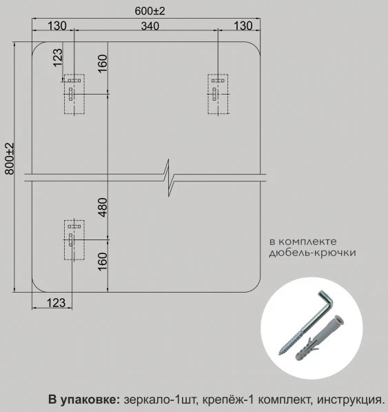 В комплекте: дюбели-2 шт., шурупы-2 шт. |