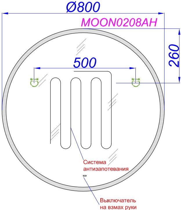 Зеркало Aqwella Moon_A 80x80, с подсветкой Led, сенсор, датчик, диммер, подогрев. Все характеристики |