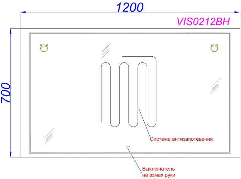 Зеркало Aqwella Vision_B 120x70, с подсветкой Led, сенсор, датчик, диммер, подогрев. Все характеристики |