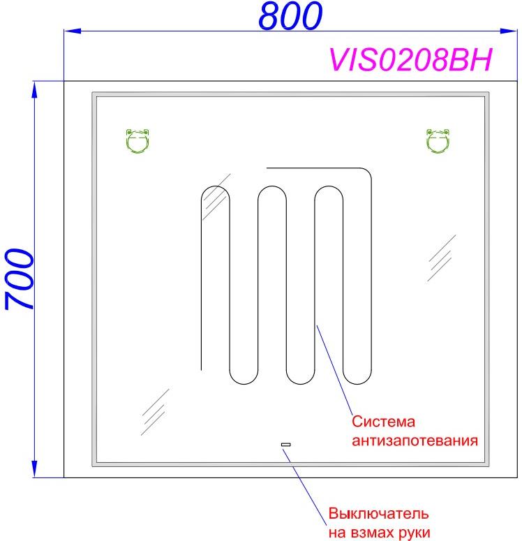 Зеркало Aqwella Vision_B 80x70, с подсветкой Led, сенсор, датчик, диммер, подогрев. Все характеристики |
