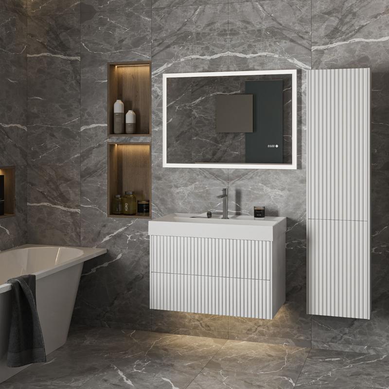 В комплекте: диодная лента, сенсорная кнопка, диммер, антизапотеватель, циферблат с часами, набор креплений. |
