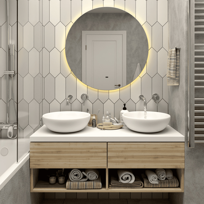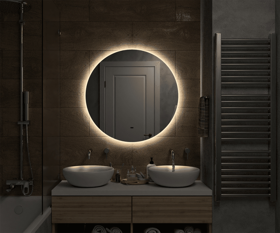 В комплекте: встроенный LED-светильник с ореольной теплой подсветкой, бесконтактный диммируемый овальный сенсорный выключатель. |