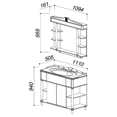 Зеркало с полками Belux Флоренция 109 с подсветкой, белый 18. Все характеристики |