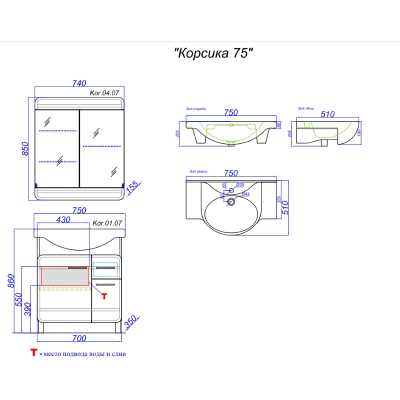Зеркало-шкаф Aqwella Корсика 74x85. Все характеристики |