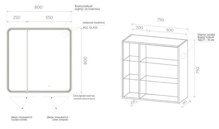 Зеркало-шкаф Axus Glory 80x80, с подсветкой, сенсор. Все характеристики |