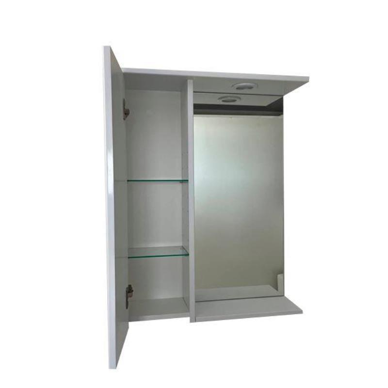 Зеркало-шкаф Garda Marko3_600L 60x82.6, левый, с подсветкой из влагостойкого полотна.Свойства. Материал корпуса ЛДСП, толщина-16 мм. Боковины корпуса, фасады, верхняя и нижняя открытая полки из МДФ, толщина-16 мм. Покрытие: высоко-глянцевая белая эмаль (Италия). 5 слоев краски. Петли с доводчиком. 2 стеклянные полки внутри, толщина-4 мм. Освещение встроено в верхнюю открытую полку. Открытие захватом за нижнюю часть фасада шкафа. Зеркальный шкаф Marko3_600L 60x82.6 см, левый, с подсветкой в собранном виде. Производство. Компания Garda занимает лидирующую позицию в Беларуси по выпуску фасадов из МДФ более 20 лет. В 2019 году освоила новое направление в изготовлении мебели для ванных комнат. Высокотехнологичное оборудование. Качество. Материалы мировых брендов. 5 ступеней нанесения эмали видимых частей фасадов и боковин. Фурнитура с доводчиками известных производителей для плавного хода дверей и ящиков. Контроль на каждом этапе производства. Изображение и цвет на мониторе могут отличаться от оригинала. Комплектность: