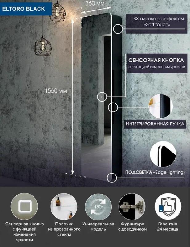 Зеркало-шкаф Континент Eltoro Led 36x156, с подсветкой, сенсор, МВК112. Все характеристики |