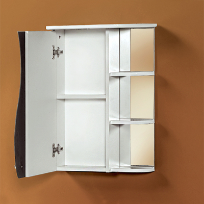 Зеркало-шкаф с полками Акваль Милана 50x70, с подсветкой, левый AM.04.50.00.L из водостойкой плиты МДФ.Свойства. Влагостойкое зеркальное полотно. Корпус-ламинированная ДСП. Двухсторонняя ламинация. Фасад-пленочная МДФ. Поверхности покрыты эмалью, нанесённой на влагоустойчивую грунтовку. Задняя стенка-ДВП. Зеркало-шкаф с полками Милана 50x70 см AM.04.50.00.L с левой распашной дверью с зеркалом и несъемной полкой внутри, с тремя открытыми полки сбоку и светильником. Производство. Компания Мебесон выпускает мебель Акваль для ванных комнат с 2002 года. Крупные растущие производственные мощности. Эффективные современные технологии. Продукция широко представлена по всему СНГ. Качество. Надежные шкафы и зеркала выполнены из материалов, устойчивых к постоянной повышенной влажности и воздействию химических веществ. Фурнитура из нержавеющей стали, покрытой хромом, от известных производителей. Продукция соответствует всем требованиям и нормам РБ. Дизайн. Красивая модная мебель различных стилевых направлений. Вписывается в классические и ультрасовременные интерьеры. Широкий размерный ряд. Отличное решение для небольших санузлов по выгодной цене от производителя. Изображение и цвет на мониторе могут отличаться от оригинала. Комплектность:
