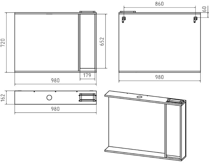 Зеркало-шкаф с полкой Misty Алиса 98x72 с подсветкой, правый. Все характеристики |