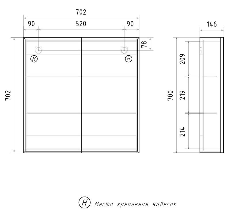 Зеркало-шкаф Volna Geometry 70x70, 2дв., белый, szGEOMETRY70. Все характеристики |