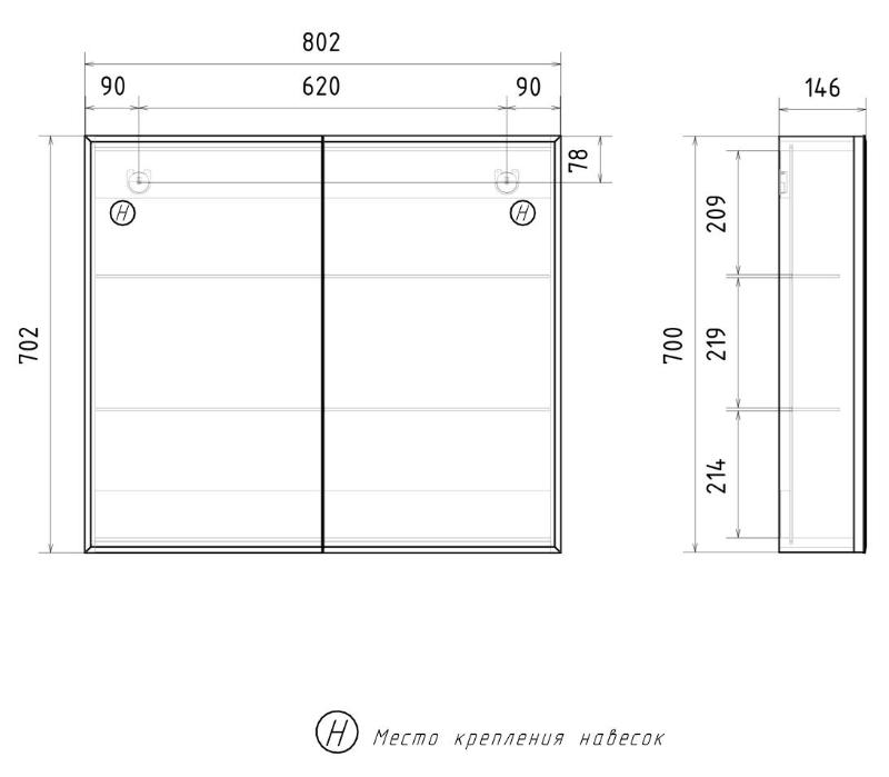 Зеркало-шкаф Volna Geometry 80x70, 2дв., белый, szGEOMETRY80. Все характеристики |