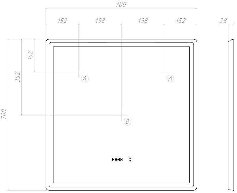Зеркало Vigo Geometry Luxe 700 70x70 с подсветкой LED, сенсор, датчик, диммер, часы, подогрев. Все характеристики |
