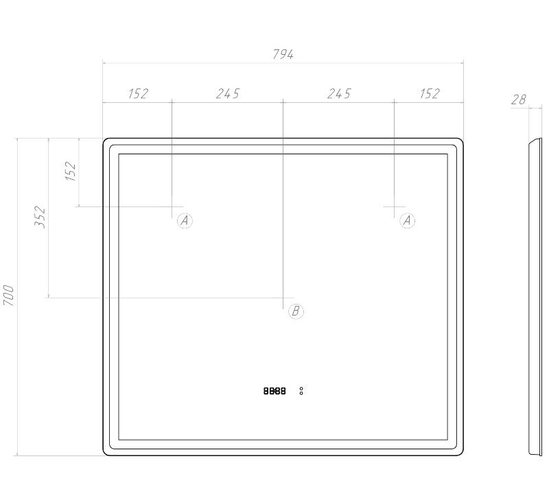 Зеркало Vigo Geometry Luxe 800 80x70 с подсветкой LED, сенсор, датчик, диммер, часы, подогрев. Все характеристики |