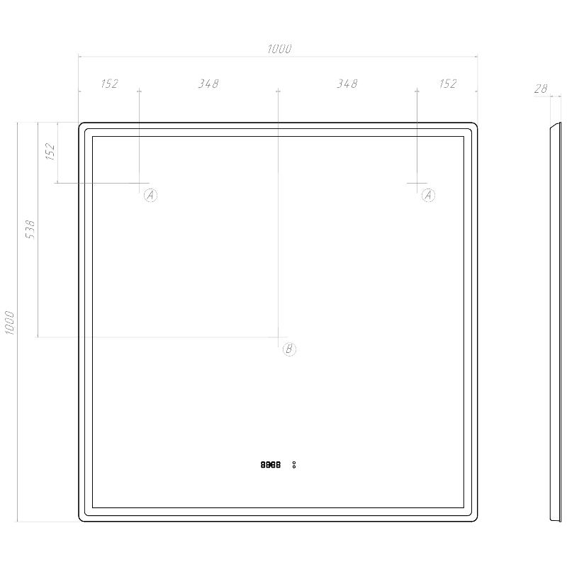 Зеркало Vigo Roberta Luxe 1000 100x100 с подсветкой LED, сенсор, датчик, диммер, часы, подогрев. Все характеристики |