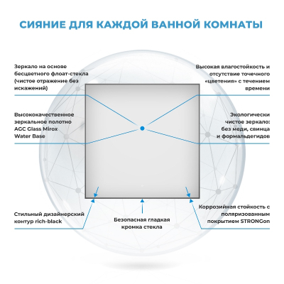 Зеркало Wellsee 7 Rays' Spectrum 60x60 172200290 из серебряной амальгамы AGC Glass Mirox Water Base 4 мм. Свойства. В основе изделия бесцветное флоат-стекло – чистое отражение без искажений. Экологически чистый состав без меди, свинца и формальдегидов. Безопасная гладкая кромка с антикоррозийным поляризованным покрытием STRONGon. В безрамочных краях не накапливаются пыль и грязь. Изящный контур rich-black (насыщенный черный). Легкий монтаж на дюбель-гвозди. Зеркало Wellsee 7 Rays' Spectrum 60x60 см 172200290 не покрывается плесенью со временем при должном своевременном уходе. Производство.Польская компания Wellsee выпускает сантехнику для ванных и душевых комнат. Современное ультратехнологичное оборудование. Заводы расположены в Польше, Турции, Китае и Беларуси. Качество.Продукция соответствует строгим международным стандартам. Качество Европа. Гарантия.Продолжительная гарантия от производителя - 10 лет. Изображение и цвет на мониторе могут отличаться от оригинала. Комплектность: