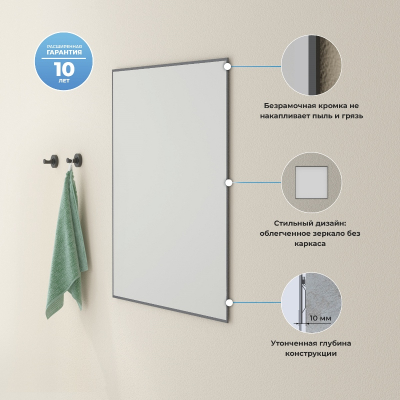 Зеркало Wellsee 7 Rays' Spectrum 65x65 172200300 из серебряной амальгамы AGC Glass Mirox Water Base 4 мм. Свойства. В основе изделия бесцветное флоат-стекло – чистое отражение без искажений. Экологически чистый состав без меди, свинца и формальдегидов. Безопасная гладкая кромка с антикоррозийным поляризованным покрытием STRONGon. В безрамочных краях не накапливаются пыль и грязь. Изящный контур rich-black (насыщенный черный). Легкий монтаж на дюбель-гвозди. Зеркало Wellsee 7 Rays' Spectrum 65x65 см 172200300 не покрывается плесенью со временем при должном своевременном уходе. Производство.Польская компания Wellsee выпускает сантехнику для ванных и душевых комнат. Современное ультратехнологичное оборудование. Заводы расположены в Польше, Турции, Китае и Беларуси. Качество.Продукция соответствует строгим международным стандартам. Качество Европа. Гарантия.Продолжительная гарантия от производителя - 10 лет. Изображение и цвет на мониторе могут отличаться от оригинала. Комплектность: