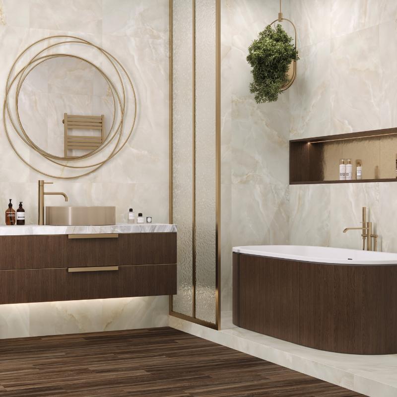 Керамогранит Delacora Onyx Breez Crema 120x60 см 60120ONB01M подходит для укладки на пол и стену.Производство. Новейшее высокотехнологичное оборудование. Современные технологии. Завод расположен в Екатеринбурге. Качество. Продукция соответствует всем строгим требованиям и нормам. Качество подтверждено российскими и международными сертификатами. Изображение и цвет на мониторе могут отличаться от оригинала. Комплектность: