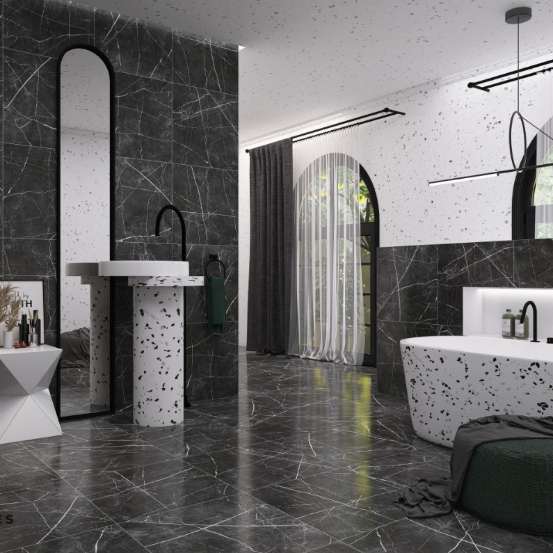 Напольная плитка-керамогранит ProGres Marble 60x60 Line Dark Grey. Все характеристики |