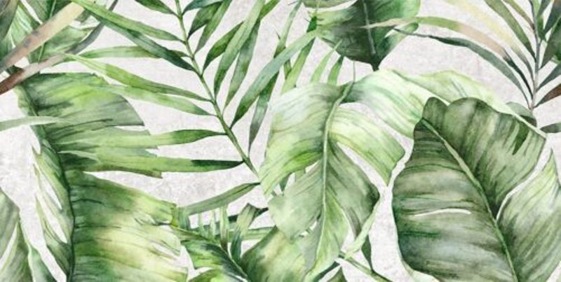 Плитка-декор Beryoza Ceramica Sombra 1 50x25 Тропики из глазурованной керамики. Свойства. Цвет-серый, зеленый. Глянцевая, гладкая поверхность, рисунок из пальмовых листьев. Плитку использовать для внутренней отделки стен.