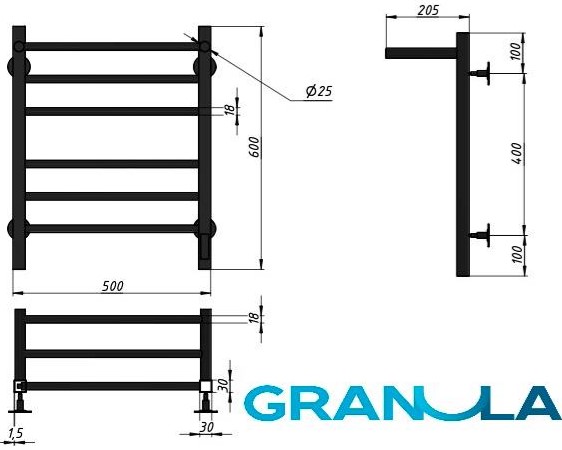 Полотенцесушитель Granula Квадро 50x60 с полкой, электрический, терморегулятор, черный. Все характеристики |