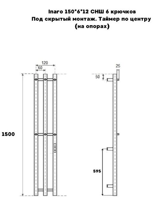Полотенцесушитель Маргроид Ferrum Inaro СНШ 150×6×12 электрический, 6 крючков, графит. Все характеристики |