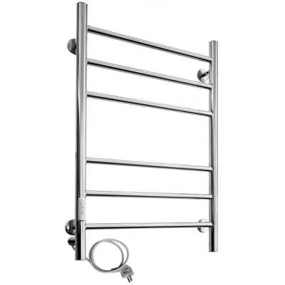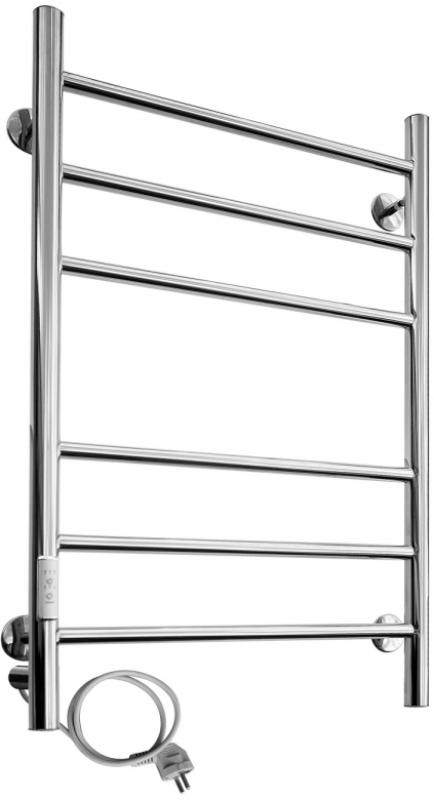 Свойства: Материал - нержавеющая сталь AISI 304 с хромированным покрытием. Терморегулятор: 30, 40, 60 градусов. Таймер: 2, 4, 6 часов с последующим отключением. Можно монтировать как и с левой, так и с правой стороны. Вид подключения - универсальное (электропровод с вилкой или скрытое подключение). Расположение диммера полотенцесушителя - слева.